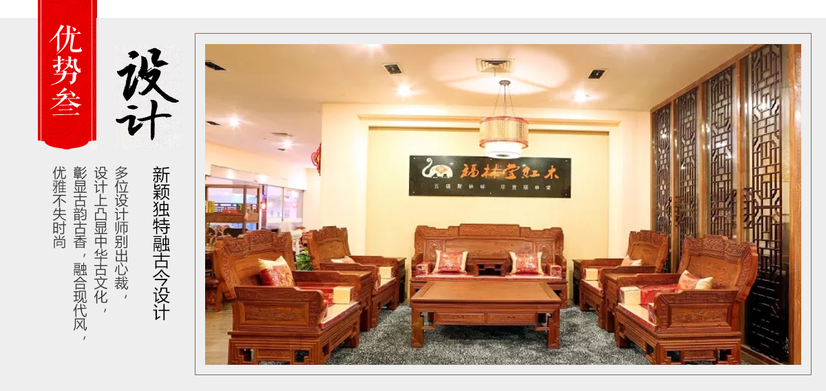 東陽市大聯(lián)福林堂紅木家具廠座落于素有“東方好萊塢”之稱的國家AAAAA級影視旅游基地橫店影視城, 是一家集開發(fā)、設計、生產、銷售、服務為一體的綜合型企業(yè)。本公司匯集一批具有豐富生產經(jīng)驗的能工巧匠,具有豐富的紅木家具設計生產經(jīng)驗。本公司產品主要選用紫檀、花梨、酸枝、雞翅等優(yōu)質紅木,并采用純天然蜂蠟飾面。經(jīng)過蒸煮、脫脂、烘干、定型等多道工序嚴格處理,福林堂紅木始終嚴格秉承“質量第一”、“信譽至上”的經(jīng)營理念,在繼承傳統(tǒng)工藝的基礎上,不斷創(chuàng)新,大力引進先進家具設備、烘干設備,實現(xiàn)了現(xiàn)代生產工藝與傳統(tǒng)表現(xiàn)手法的有機相融。